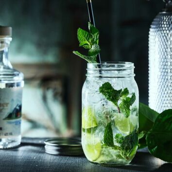 Die Limette gründlich waschen und achteln. Limettenstücke mit dem Lime Leaf und den Minzblättern in ein Glas geben und mit einem Stößel leicht zerdrücken. Das Glas mit Crushed Ice und Lime Leaf Gin sowie Zuckersirup dazugeben, einmal durchrühren und mit Sodawasser auffüllen, mit etwas Minze ausgarnieren.