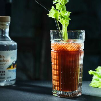 Alles im Shaker mit etwas Eis für ein paar Sekunden gut shaken. Durch ein Sieb in ein mit Eiswürfel gefülltes Glas füllen und mit Stangensellerie garnieren.